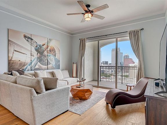 Penthouse-level residencePrivate balconyRecent updatesFresh paintBreakfast barSpacious bathNeutral finishes