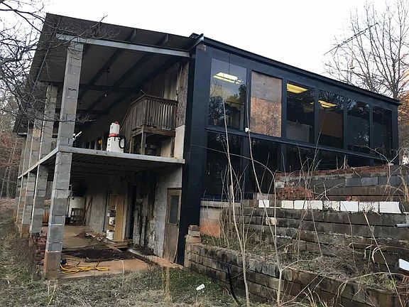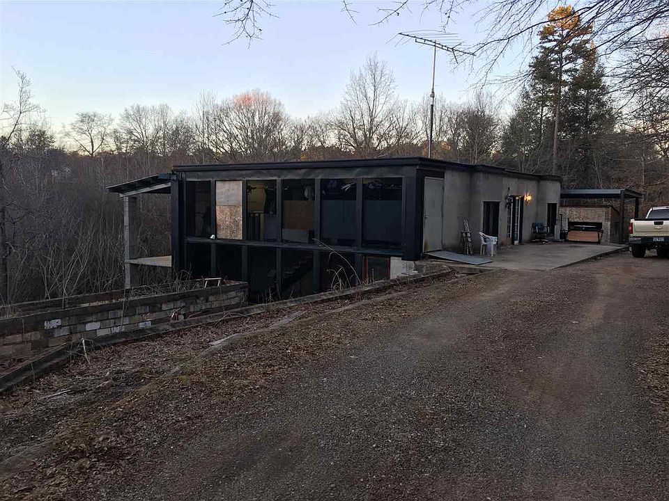 This is one of a kind home. Simply put, this property is the turnaround of the century. It is all concrete: beam, post, and even the roof. The home is built in a south/mid-west contemporary style, with all commercial doors and windows. The house is double proofed and insulated, including all doors from room to room. It is constructed like a shelter for bombs, tornados, or any other disaster. The home is very well built, but it needs some inside work and a lot of TLC. The seller has a lot of materials for completing the home, should it be necessary, they can be provided. This home has one master bedroom that includes a partially finished bath. On the main level one will find a huge living and dining room combination with a real wood burning fireplace and whirlpool tub. Also, an all lined bridgehead shelter was constructed. The side has a long Florida room (all windows) with a storage area. The lower level has an efficiency apartment with a bedroom, bath, kitchen, and laundry room combination. Also, there is an extra room that can easily be turned into a hobby room (all utilities are available). The upper level has a one room apartment that was started but not finished. The property has a huge 25x37 barn (lower level comes with a stage & spectator space). Beside the barn there is a gathering place with a roof sheltering it. It is right next to a lovely creek and has a roasting pit. It is supposed to accommodate 30-40 people. The creek runs through the middle of the property. It also has a well-constructed garden area, with several plots surrounded by blocks. On the other side, one will find a 25x30 chicken or tool shed, with a storage room upstairs. This property is in need of a lot of finishing touches, updating, and cleaning. It is not for a regular FHA or USDA buyer. This is great for an investor or cash buyer with a vision for the place. Historical value is added to the property, because it is located right along creek associated with the ancient Indian Cherokee tribe's trail of tears.