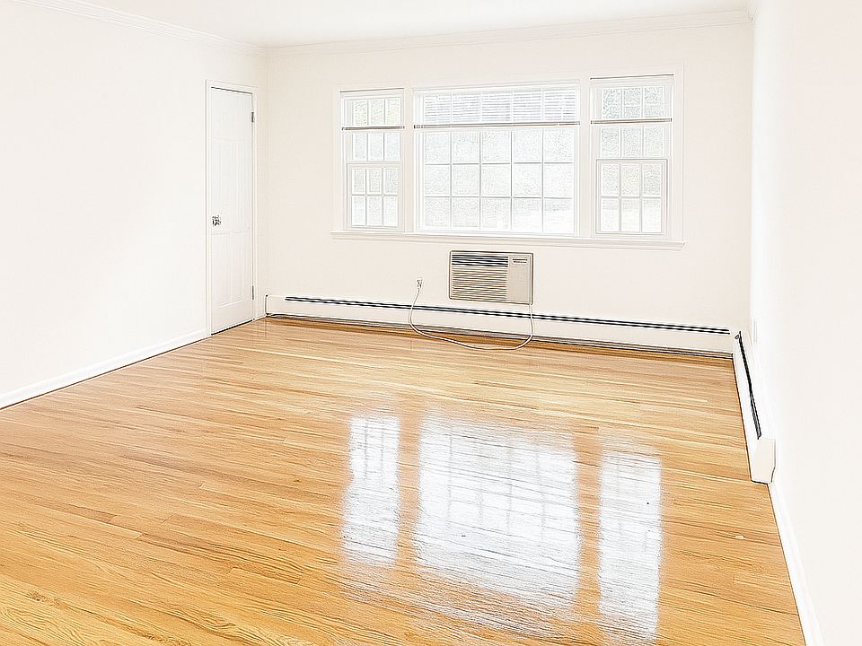 Upstairs apartment. No neighbor noise upstairs or on the sides - entrance stairwell on one side, outside on the others. 700 sq ft. Fully renovated 5 years ago, kitchen and bath gutted. Stainless appliances - refrigerator/microwave/dishwasher/range, new doors, new K and Ba floors, shower tile and sliding glass doors, new panel/lights/outlets/switches, hardwood floors refinished, walk in bed closet, LR coat closet, hall/linen closet, in-wall A/C in LR and bed, thermostat-controlled hydronic (hot water) baseboard heat. Heat, hot water, garbage, etc. included - tenant pays for electricity and gas (for the range), Internet access, TV/land-line phone if appropriate. Comcast Xfinity and Verizon FiOS ready. 1 or 2 cats allowed with one-time fee and monthly fee. Sorry, no dogs allowed to visit or live.