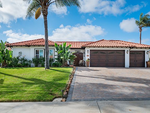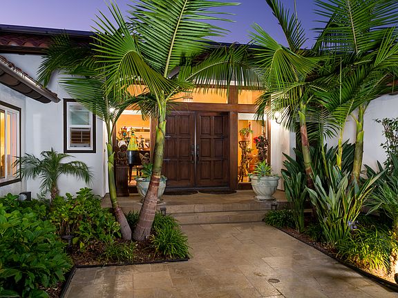 Gorgeous, secluded, single level Spanish Hacienda with private court yard, spectacular panoramic views, pool/spa, custom tropical covered hatch with built-in B.B.Q., water, electricity & TV hook up, custom deck with pergola, solar panels. This home features 4 bedrooms, 2.5 bathrooms, approximately 2,895 sq.ft., on almost 1/2 acre lot, open floor plan with natural light throughout, high ceiling with flooring variations including gleaming hard wood, marble, versatile travertine and carpet. Living Room and Family Room with fireplaces, gourmet kitchen with large island, slab granite counter top and stainless steel appliances. Large Master Bedroom with walk-in closet and master bathroom with separate bathtub and frame-less enclosed shower. Tropical landscaping with some fruit trees. Large driveway with pavers. Complete security and alarm systems. This property is the perfect place to entertain your family and friends. Refurnished in 2014. Buyer and buyer's agent to verify everything herein before close of escrow.