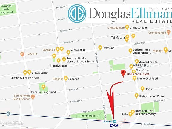345 Decatur Street is located on a gorgeous tree-lined block next to the best part of Malcolm X Blvd near Chez Oskar, Nana Ramen and Casablanca. The neighborhood is amazing. The world famous live music venue and cafe Bar Lunatico near by, as are Saraghina and Peaches. Just three short blocks away is the convenient A/C train at Utica Ave.