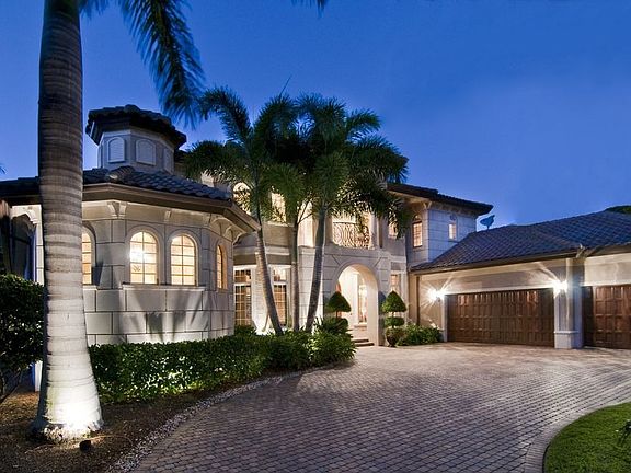 Well-appointed classic estate home with over 100 ft on Venetian Bay and close proximity to Naples beaches affords you the perfect boating lifestyle. The exquisite foyer has custom granite and onyx inlay medallion flooring and beautiful views of the bay. Relax in the sumptuous master suite with French doors to the spa and pool. Three ensuite guest rooms, chef-inspired kitchen with walk-in wine cellar and commercial grade appliances, spacious patio with outdoor kitchen, pool and spa make entertaining effortless. In addition to custom crafted carpet in master, home has pecan hardwood and granite floors throughout. Many enhancements to this exquisitely maintained property include over-sized dock and lift, custom built-ins throughout, "Fine Arts" lighting, elevator, porcelain tile garage floor and impact glass throughout.