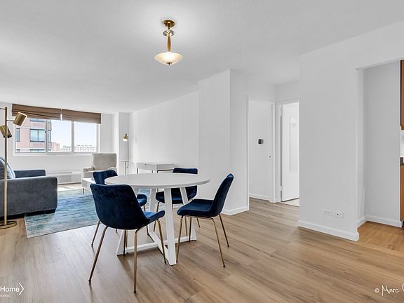 Panoramic bridge and river views. Windows in every room. Fresh paint and new flooring. This north-facing 750 SF corner unit with all-day sun occupies the only one-bedroom line on the floor with dual exposure and may just be your NextHome! (Owner will allow one small dog.)