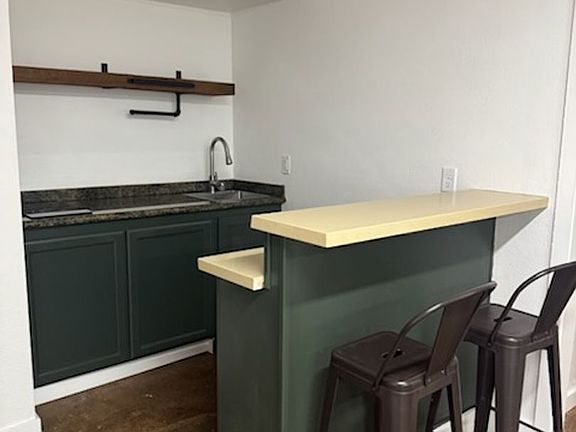 Farmhouse style sinkUpdated vanityAdditional cabinet storageShared yard spaceUpdated kitchenetteSolid surface flooringOff-street parking