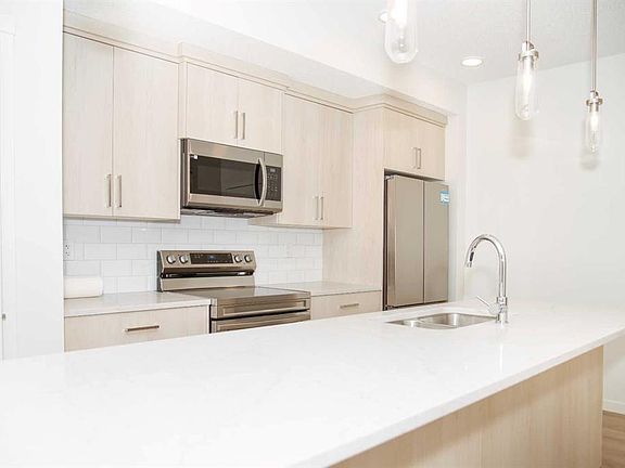 Welcome to this brand-new main-floor 1-bedroom suite in the highly desirable community of Glacier Ridge. Built by Cedar Glen Homes, this modern GR-05 model offers a well-designed layout with quality finishes throughout. Perfect for a single professional or couple, this suite combines comfort, style, and convenience in a growing Northwest Calgary neighbourhood. The open-concept floor plan features a bright living area with large windows and contemporary wide-plank flooring. The kitchen is appointed with quartz countertops, full-height cabinetry, stainless-steel appliances, and modern fixtures. The spacious bedroom includes a generous closet and easy access to the beautifully finished 4-piece bathroom. Additional highlights include in-suite laundry, a private main-floor entrance, high-efficiency mechanical systems, and a clean, neutral colour palette ready for your personal touch. Street parking or assigned parking (if applicable) provides convenient access. Located within steps of community pathways, parks, and future commercial amenities, Glacier Ridge offers a quiet, family-friendly atmosphere with quick access to Stoney Trail, transit, and nearby NW shopping centres.