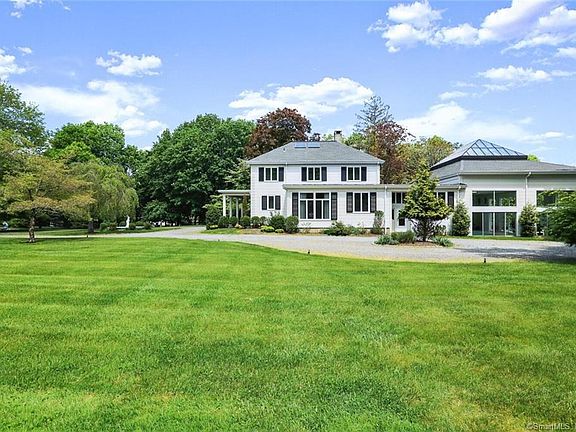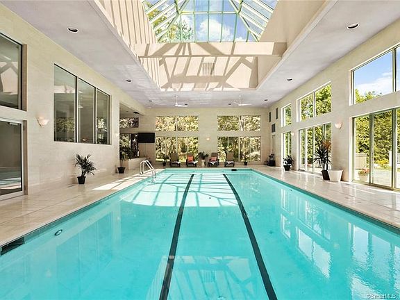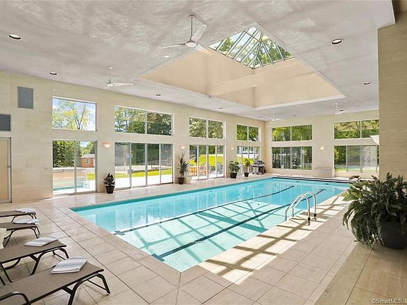 You'll never want to leave 'Splendido Manor,' an iconic estate perfect for a sophisticated and active lifestyle. This sprawling 4-acre compound in the heart of Greenfield Hill has all the amenities of an idyllic retreat. It has something for everybody with five bedrooms, a separate one-bedroom guest cottage, a lighted Sports/Tennis Court, a 1900 SF Indoor/Outdoor Pool Pavilion, a Steam Room, a Gym, and a Media Room with a bar. The main floor features a marble foyer with carved Teak double doors, a formal living room with a fireplace, a light-filled family room that opens to the kitchen, two home offices, and a spacious first-floor Primary Suite. The state-of-the-art kitchen is a cook's paradise, overlooking the breathtaking 26' x 80' indoor/outdoor pool and glass pavilion. Walking distance to Greenfield Hill Village Center with restaurant, market, shops, dry cleaner, and pet groomer! Close to train and highways.