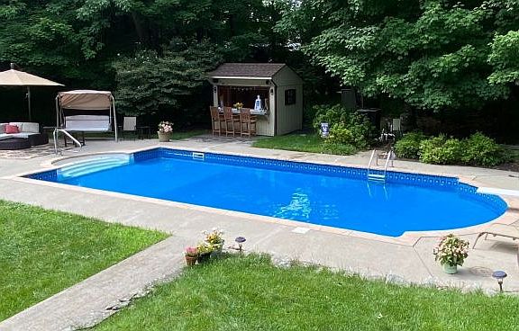 LOCATION! LOCATION! LOCATION! Welcome Home to this exceptional Grand Colonial with close proximity to Rts. 15 and I-80. Stately brick front colonial nestled serenely on a park-like setting, Perfect home for entertaining indoors and outdoors, 2decks; heated pool (new liner and new heat pump); outdoor bar; updated kitchen with quartz countertops, center island with granite, SS appliances ; 2 story FR with stone fireplace and wet bar; large game room with french doors leading to deck; office den BR on 1st fl; hardwood floors and tile; 2nd floor offers a cat walk; 4 large bedrooms, MBA has a skylight, jetted tub and stall shower, huge multi purpose room featuring amazing cedar plank walls; full walk out basement; 3 car garage; newly paved driveway. Please see attached sheet and so much more.