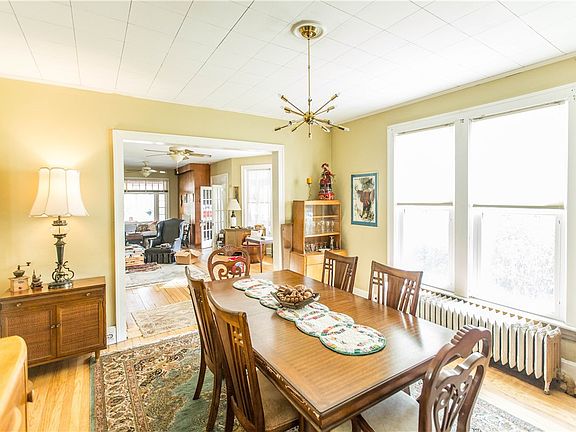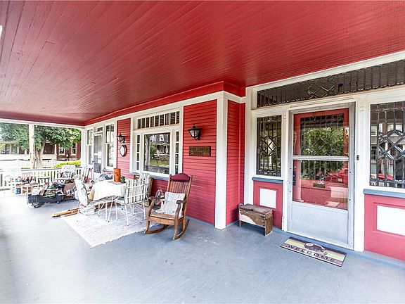 Lovingly cared for home in a National Historic District. Property features mature landscape on a large corner lot, a huge front porch and rear patio perfect for grilling. Home features lots of natural light, replacement double hung, insulated windows, 10 ft ceilings throughout, beautiful original hardwoods on first floor, a large second floor laundry room with porch, must see second floor bathroom with large walk-in shower and freestanding soaking tub. This property includes a separately metered, detached garage with finished work from home office or income property. Ample off-street parking on long gravel drive. Adjacent lot offering additional parking and limitless potential to convey with sale.