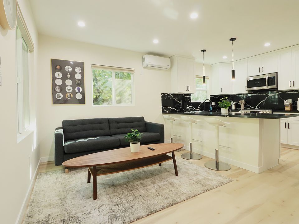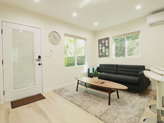 FULLY FURNISHED, FLEXIBLE LEASE TERMS Unwind and make yourself at home in this calm, stylish space. This spacious one-bedroom in Prime West Hollywood offers everything you need for a comfortable stay: Queen-size bed Dedicated workspace with desk and chair Smart TVs in both the living room and bedroom In-unit laundry High-speed internet Heating and air conditioning Fully furnished (just bring your personal toiletries) Abundant natural light from large windows Digital door locks for added convenience Large patio with outdoor dining area Street parking with a permit provided for one vehicle Tenant is responsible for the cost of utilities & Internet** Flexible lease