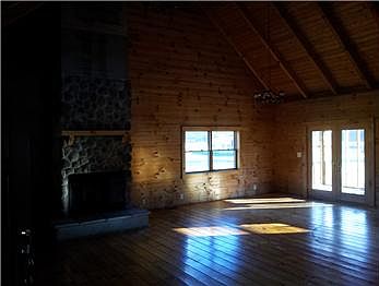 Inviting log cabin on 2.59 acres, only about 1 mile from Route 52 in Haverhill Ohio. This cabin offers 2 bedrooms and 2 and 1/2 baths. A large, open plan, living/kitchen/dining area has cathedral ceilings and a big stone fireplace. The master bedroom is on the main level and offers a full bath with jet tub, separate shower, and double vanities. The second bedroom is in the loft and also includes a full bathroom. Downstairs there is a utility/mud room with a half bath. The dining area has nice French doors that lead to a screened-in porch on the back of the cabin. This would make a great
