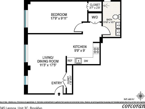 This 680 square foot apartment home has 1 bedrooms and 1.0 bathrooms. This home is located at 345 Lenox Rd #3C, Brooklyn, NY 11226.