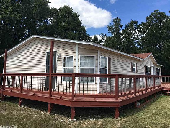 Country home in the Ozarks near Salem Arkansas for sale. 3 bedroom 2 bath manufactured home on 28.70 wooded acres. Heatpump with propane backup. Large living area featuring a mirrored fireplace with a stone slab hearth. Custom cabinetry in the bathroom with ceramic tiled floors and a large master closet. Wraparound deck freshly stained. The property is fenced and has a small pond.