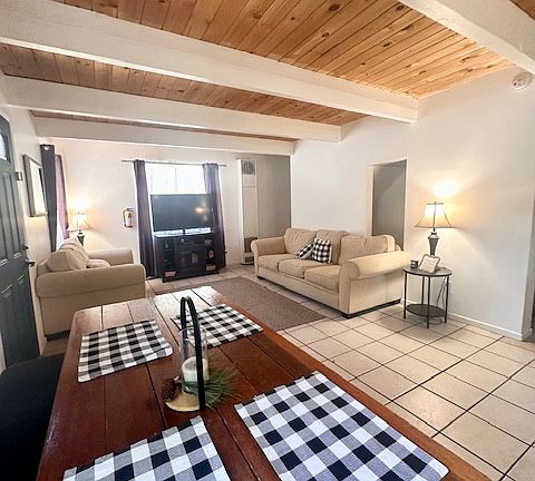 Great floor plan with a kitchen and family room downstairs. One full bedrooms, bathroom and laundry room also downstairs. . Upstairs you'll find another family room/den and two more large bedrooms. Each room has a vaulted wood ceiling and the master has its own walk in closet. Laminated wood flooring upstairs for that open feeling and ease of cleaning. Walking distance to the elementary school, Park, Post office, local bar and grill, store, high school and local public trail systems.