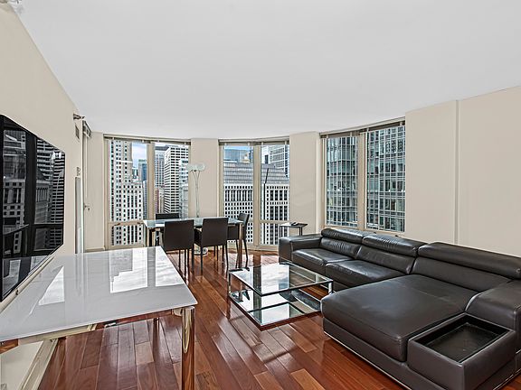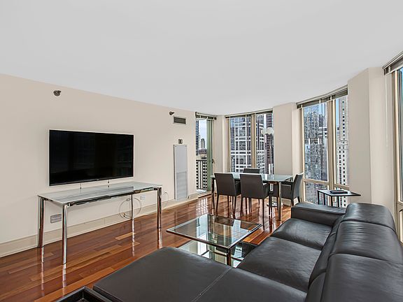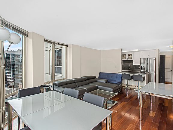 Fully rehabbed large one bedroom in the Sterling with river views! New white kitchen with glass cabinets and stainless steel high end appliances, gorgeous shower with temperature controlled faucet, new washer and dryer in unit, plenty of closet space and your own balcony overlooking the river. Full amenity building including 24/7 door person, tennis courts, swimming pool, outdoor lounge and BBQ area and dog run. Walk to the Loop!! Gorgeous unit. Assessment includes cable and internet. This building is located 1 block from the River Walk, close to numerous EL and bus lines, but also easy bike and walking distance to the Loop. Building has attached dry cleaner, rental parking, convenience store, drugstore and sandwich shop, with professional door staff and on-site management and 24-hour maintenance. Well run building with great reserves. Rental parking available in attached garage.
