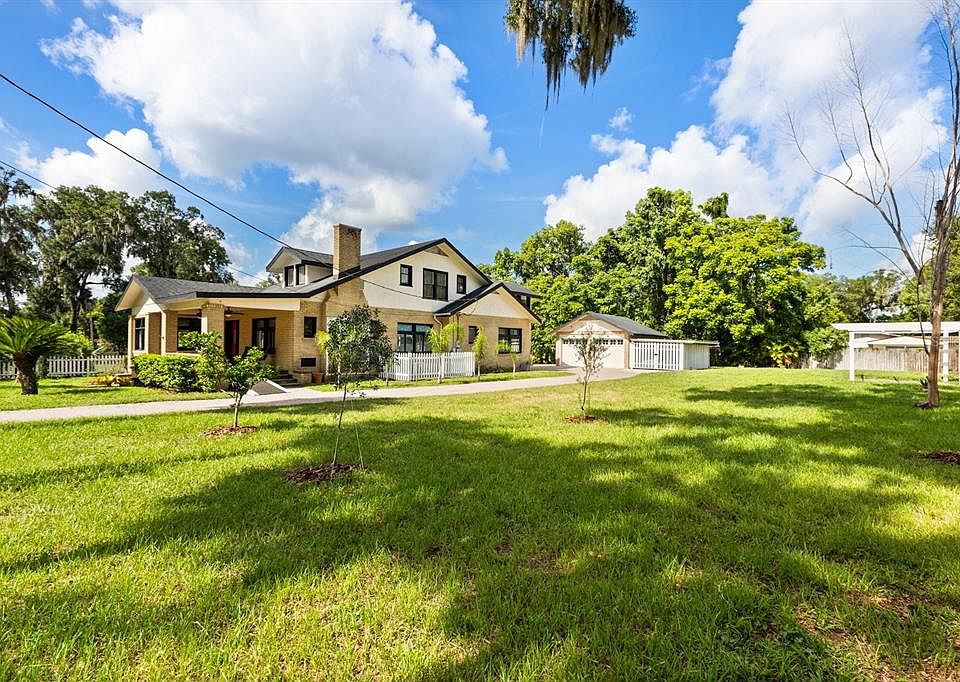 One or more photo(s) has been virtually staged. This 1926 historic home in downtown Orange City is a rare find offering 5 bedrooms 3 bathrooms a study/den and even a basement on nearly half an acre. Thoughtful UPGRADES completed in 2015–2016 include a new roof, full electrical rewire, updated bathrooms, granite countertops, 42” cabinetry, a tankless water heater and plumbing. Solid low maintenance original brick construction built when masonry was truly an art. This home offers 5 bedrooms 3 bathrooms a study/den and even a rare basement all on nearly half an acre shaded by majestic oaks. The primary suite and bath are located downstairs along with a spacious study or den. Upstairs you’ll find 3 large bedrooms 2 full baths providing ample room for family and guests. The flow through open plan showcases original hardwood flooring throughout blending historic charm with modern updates. Outdoor features include a detached 2 car garage with carport a brick patio created from the home’s original fireplace bricks an extended pavered driveway a pergola and plenty of space for entertaining or projects. This property is part of Orange City’s historic area where timeless craftsmanship meets modern comfort. Conveniently located near Blue Spring State Park and the St. Johns River this home offers both history and lifestyle an extraordinary opportunity you won’t want to miss.