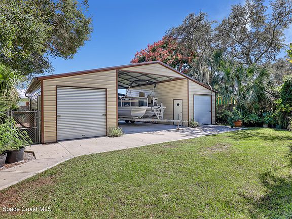 Remarkable ONE OWNER 4 bedroom, 3 bath, screened pool home on 1/2 acre! Detached 2 car garage workshop & large covered boat/RV/truck/tailer parking w/over 1,300 sq/ft. It has large overhead doors for all your big toys. Special building and very private setting adjacent to 577 acre Malabar Scrub Sanctuary/Preserve with miles of hiking trails. Screened heated salt water pool, built-in hot tub spa w/waterfall & removable professionally installed baby fence. Beautiful outdoor area w/nice covered porch overlooking fenced back yard & lush landscape. This neighborhood & property has huge shading mature oak trees that give it a park like setting. All new hurricane windows. Gourmet kitchen w/custom cabinetry & quality appliances. 42' maple cabinets w/crown molding, tumbled marble backsplash & granite countertops. Brand new AC & new roof in 2021. Transferable termite bond on home since it was built. Nice indoor laundry room. City water. Sprinkler system. Pride of ownership throughout. The best secret neighborhood tucked away with no thru traffic. Very special area & home. Rare find. Hurry.