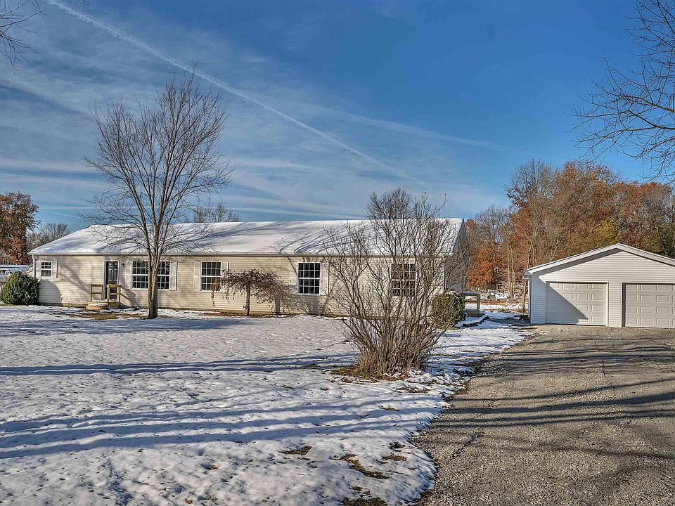 Beautifully updated 4-bedroom, 3-bath home on 1.09 acres! All major features have been updated, including HVAC, A/C, roof, siding, flooring, carpet, paint, and light fixtures throughout. The inviting family room opens to a spacious primary suite featuring a large walk-in closet with built-in organizers, a luxurious bath with double sinks, a whirlpool tub, and separate shower. The suite also includes a versatile office/sitting room—perfect for working from home or creating your own retreat. The kitchen offers abundant cabinet space, an island, built-in ovens, and stainless steel appliances that stay. Dining area with sliders leads to the backyard. Additional family room includes a built-in desk area and gas fireplace. Two bedrooms share a full bath, with a third guest bedroom and additional bath on the opposite side. Convenient laundry/mudroom with sink and access to the 2-car garage. Set back from the road with a turnaround driveway and a spacious backyard ready for your personal touch. Don't miss out, set your showing today!