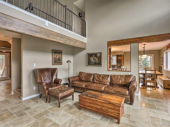 Peaceful and private nearly 7 acres situated above Deer Creek Valley. Enjoy the views up and down the entire valley and on to multiple ranges beyond from either of the two large newly resurfaced premium decks. The home offers a sense of coziness and privacy with 4 bedrooms, each with an ensuite bathroom. The living room has a massive south facing two-story cathedral new wall of windows overlooking the valley. The kitchen has a large granite island with seating, a Viking Professional gas range and additional dining area that opens up to one of the two large decks. Off the kitchen is a walk-in pantry and a flex room with a bay window and is currently set up as a game room with a futon. Enjoy the huge private deck or 5 piece bathroom with soaking tub in the main floor master bedroom. The basement has a wet bar with a large game room area overlooking the huge well maintained indoor lap pool (~24,000 gallons with a newer high altitude commercial grade heater). The pool room has cedar ceilings, a large lounging area with natural light from its wall of windows and four skylights with southern exposure. This home is ideally equipped for mountain living with new natural stone flooring throughout (travertine on main and slate in basement) and two efficient Jøtul cast iron fireplaces in the living room and in the bar area. Attached two car heated garage, plus huge 8 car detached garage / pole barn (over 1500 square feet) and 10’ x 30’ stable. Property is mostly forested with pine and has multiple aspen groves and rock outcroppings. Only ~30 minutes to C-470 and 285 and less than an hour from downtown Denver, this home could easily be your weekend retreat or daily resort.