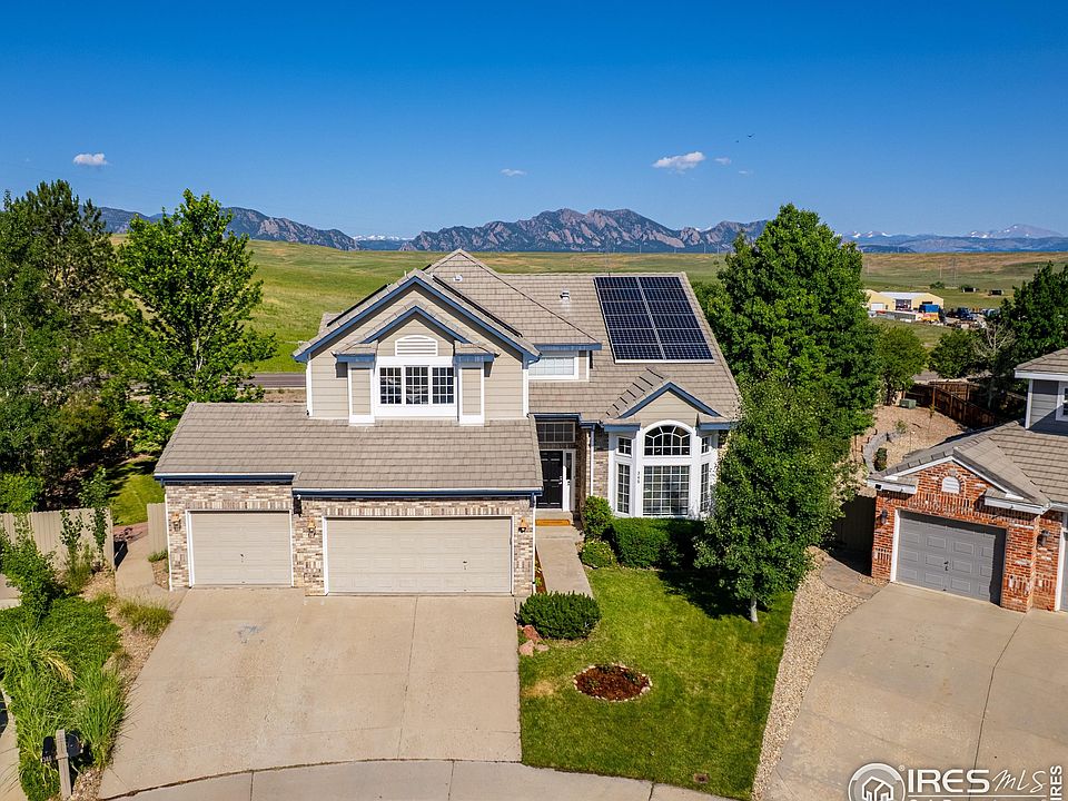 Located at the end of a culdesac in desirable Rock Creek, 345 Onyx Way offers STUNNING VIEWS of the Flatirons and Back Range over rolling open space. Charming curb appeal invites you into this modern 5 BR plus study, 4 BA home. Enter onto grayed solid oak floors that extend through the entire main floor and enjoy the generously sized formal living with soaring ceilings and dining room perfect for entertaining. The enormous kitchen with a wall of west facing windows overlooking the flat backyard and offering incredible vistas right from the kitchen sink will surely be the heart of the house. It offers a stunning amount of cabinet space, large central island, pantry and eat-in area that flows seamlessly into a welcoming family room complete with cozy gas fireplace that beckons you to come and hang out. A functional office with direct access to a spotless 3/4 bath offers exceptional flexibility for those needing a main floor guest room. Upstairs, an enticing primary suite with west-facing views, wood floors, a luxurious bathroom and huge walk in closet awaits. 3 additional bedrooms sitting on newer carpet share 2 full baths offering plenty of space for everyone. The fun basement offers a 5th BR along with a large rec room perfect for movie night, home gym or both! And with a 3 car garage, there's plenty of room for all of your toys. Access to open space... check. Incredible Views... check. Well-ranked schools... check. This home has it all. Let's Get You Home!