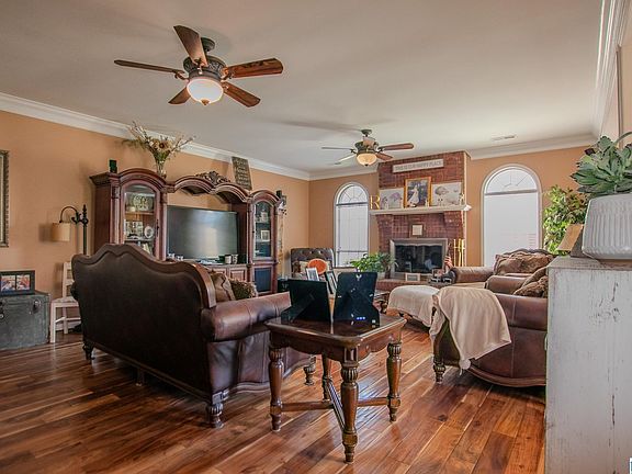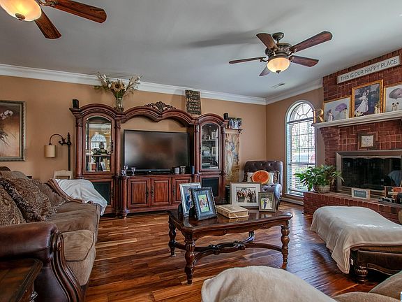 STOP the car!! Check out this beautiful full brick home on 1.1 acre in the Mountain Woods Lake area. This home has 4 bedroom and 3.5 bath. Walk in to gorgeous 9+ ceilings with crown molding, hardwood and tile flooring with carpet in the bedrooms. The kitchen has a nice eat in area and features white appliances that remain and is open to the living room that features a beautiful brick fireplace with gas logs and Bose surround system. One bedroom down the hall w/a shared bath and large laundry room with tons of storage/shelf to help with pantry. 2nd bedroom has its own full bath and huge walk in closet. The master is huge with a sitting area, walk in closet and master bath has a nice jetted tub and separate shower. Upstairs features a kitchenette, pantry closet, half bath, family room and a bedroom. Tons of attic storage with finished floor space. The outside has a great breezeway patio area to enjoy the flat yard and small fenced area. 2 car garage attached and 2 car garage detached.