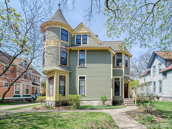 An 1875 Queen Anne Victorian in Grand Rapids' vibrant Heritage Hill. The distinctive olive green and yellow exterior, ample off-street parking, and charming architectural details set the tone. Updated finishes, modern conveniences, and smart storage enhance function and comfort throughout. Located just minutes from downtown, Eastown, colleges, and the Medical Mile, this property combines timeless character with walkability. A great find in one of the city's most sought-after neighborhoods!