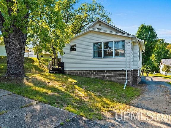 Charming 2-3* Bedroom Bungalow on a Double Lot including a large Oversized heated garage with heated floors! See this entire property with Endless Potential! This beautifully updated home offers near 2,000 sq. ft. of finished living space and is located in a quiet, desirable neighborhood near the Menominee River in Kingsford, just minutes from the Wisconsin border. The main level boasts all-new flooring and trim, recessed lighting with customizable settings (including movie-perfect ring lighting), and a bright, open living room. A highlight of this home is the expansive walk-out basement, *which serves as a non-conforming third bedroom-that includes egress windows, .25 bathroom and a cozy pellet stove- the lower level is a customizable blank slate. The large partially covered deck, accessible from the kitchen on the main level, offers a great space for entertaining, complete with storage underneath, a carport, and sweeping views of the yard and oversized garage. The SPOTLIGHT of the this property is the fantastic heated garage is a dream for hobbyists, featuring rare in-floor heating, attic storage, a workbench, compressor, pool table and seating for hanging out year round and ample space for projects. The detached garage fits two vehicles side by side comfortably, the space garage area is 1196 ft per the taxes. This garage is like a second home on the property! Located near shopping and recreation, this home is perfect for those seeking a blend of modern updates and character in a serene setting with a rich history as a three-generation home. Don’t miss the opportunity to make this your home!