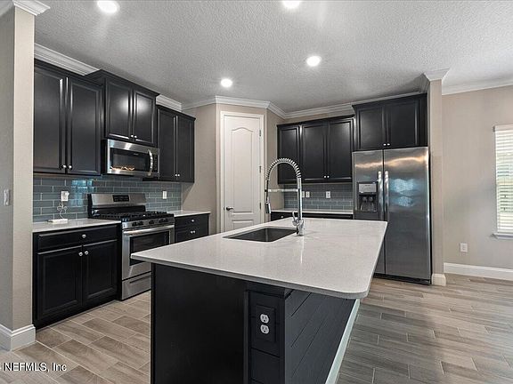 The kitchen features quartz countertops, kitchen island, and stainless steel appliances.