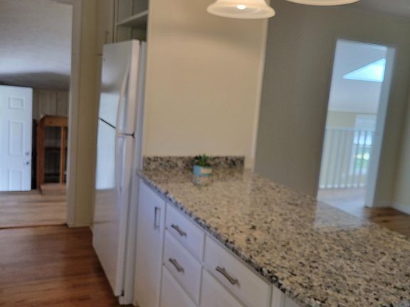 - Exterior features: Granite kitchen countertops, Large private wooded backyard, Newly painted rooms, Newly renovated kitchen, Newly updated bathrooms, No Utilities included in rent, covered outdoor sitting area, floor to ceiling windows in master bedroom