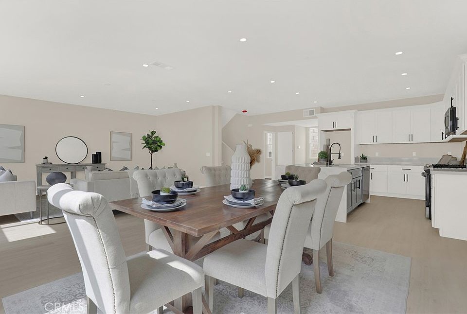 A wonderful opportunity to live in a ENORMOUS, BRAND NEW condo in the beautiful city of La Habra. This condo is approx. 2,385 Sqft with 3 Bedrooms and 3.5 Bathrooms. It's the LAST ONE of this floor plan. High ceilings throughout the home makes the entire condo feel extra spacious. Numerous windows throughout which allows for natural light. Wonderful kitchen opens to a enormous great room. Kitchen has soft closing drawers and cabinets. Large kitchen with quartz countertop and a large waterfall island. Brand new appliances (dishwasher, stove, microwave). Vinyl Flooring throughout. First Floor can be utilized in numerous ways (office, game room, guest/4th bedroom since there's a full bathroom on First Floor). Three Bedrooms upstairs. Primary Bedroom has a large walk-in closet. Primary Bathroom has dual sinks and walk in shower. Balcony on Third Floor has panoramic view of the neighborhood and hills. Large Laundry Room. 2 Car Direct Access Garage. Solar panels help lower electricity bill. Community has numerous guest parking and BBQ/Picnic area. Conveniently located near restaurants, shopping centers, markets, schools, parks, and more. Easy access to the 57, 5, and 91 Freeways.
