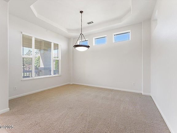 Experience single-level living at its finest in this beautifully situated home with a rare 4-car garage and breathtaking panoramic views of the city, mountains, and valley. Backs up to common area so no rear neighbors. Protected patio includes stubbed in gas for the BBQ (included), and is plumbed for a hot tub. The front is south facing so you can let mother nature do the driveway snow removal if needed! Luscious peach trees and a spot to grow your tomatoes on the east side of the home and roses and grapes on the west. Low maintenance landscaping so you can "lock and leave". Washer and dryer are included (only a couple of years old), along with the refrigerator in the kitchen. Nestled on a quiet cul-de-sac on a spacious 0.37-acre lot, this property offers the perfect blend of privacy, tranquility, and convenience. Zoned for great schools and just minutes from shopping, Mt. Rose Ski Resort, Lake Tahoe, and Reno-Tahoe International Airport, the location is ideal for both daily living and weekend adventures. Inside, the home has been freshly painted and is ready for your personal touch. Whether you're relaxing on the back patio enjoying sweeping vistas, or making the most of the oversized garage for your vehicles, gear, or hobbies, this home checks all the boxes. Don't miss this rare opportunity to own a view property in one of the area's most desirable neighborhoods. Flooring credit with acceptable offer! Open Houses this weekend-Saturday 3-5pm and Sunday 1-3pm.