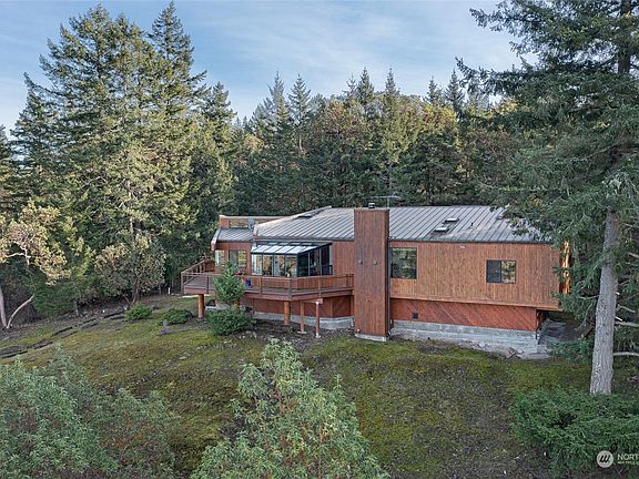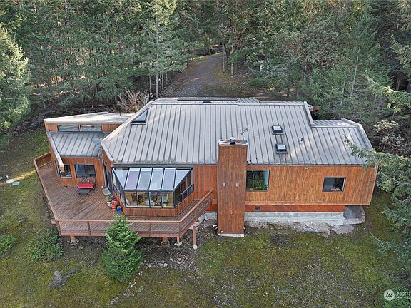A very unique opportunity to own a modern home on a little over 5 acres offering marine & mountain views. Beautiful old growth trees, fenced garden area, outdoor dining area all in a desirable neighborhood, not too far from town. 2 bedrooms 2 baths & an office with a closet, 2 car carport, open floor plan all on one level. Upgraded kitchen, fireplace with heatilator, Amerigas propane, no flat ceilings all angled, laundry room, offering privacy and walking distance to trails in the woods. You won’t be disappointed.