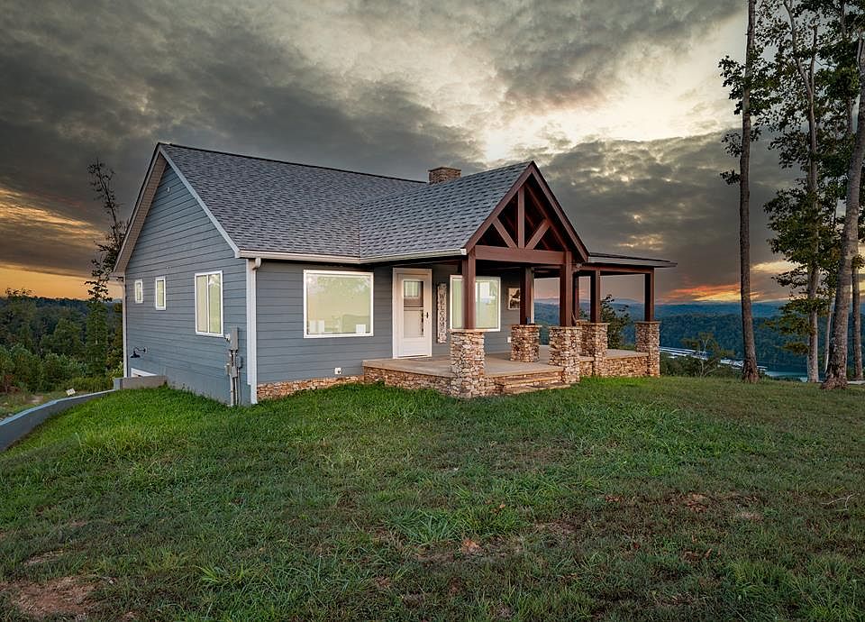 Beautifully crafted in 2022, this home offers modern comfort and two awesome views of Dale Hollow Lake. Features include bright open main floor w/ living, dining and large gourmet kitchen area. Top of the line gas range, refrigerator and dishwasher. Great cabinet and counter spaces, pantry . Granite counter tops, oversized bar with room for bar stools and featuring lots of drawer space.Cozy gas fireplace and large windows for great light and viewing the lake. Finishing the main floor is a primary bdrm with access to back open deck, and to a private bath room doubling as utility area. Lower level features 2 bdrms and full bath and 1 car garage. Call today for appointment to view!