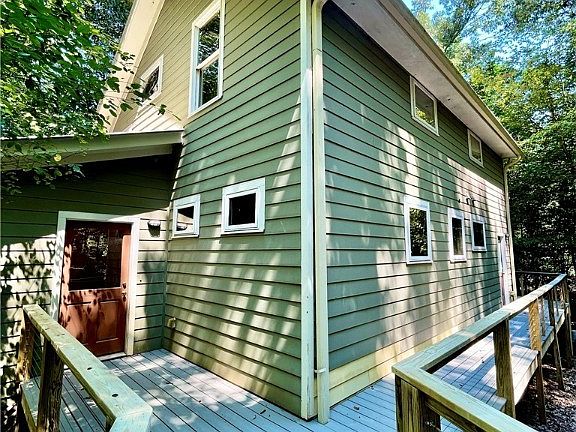 Nature Lover’s Dream Home in Kenney Ridge Community. Welcome to 345 Three Oaks Drive in Kenney Ridge, an intentional community designed for birders, hikers, naturalists. While there are no manicured lawns or perfectly trimmed hedges, those seeking a peaceful, nature-centered lifestyle can find it here. It’s a close-knit community where neighbors keep in touch with each other, join committees to help out, and remain committed to preserving local wildlife and native plant habitats. This sought-after neighborhood features a community garden, clubhouse offering regular community-wide events and peaceful, wooded trails surrounding the area. Simply step out the back door for direct access to miles of walking trails and more than 50 acres of common land including woods, streams, and meadows. Nestled in the forest, this custom-built home was built with sustainability in mind. It features: two heating zones, Low-E casement windows, extra insulation, and high-efficiency water heater. Handcrafted natural wood doors, trim, and finishes by renowned craftsman George Wright lend character and warmth to every room. A newly built ramp leads to the handicap-accessible main floor. This main-level offers a bright entry hall/mudroom/foyer with a large walk-in storage closet with a window there's a nice coat hanging wall. The kitchen boasts granite countertops, gas cook top, electric oven, stainless steel fridge, and a row of pantries with plenty of storage area. Next to the pantry is the laundry area with room for a stacked washer and dryer and an area for hanging clothes. Main-level primary suite includes two walk-in closets, tiled bath with soaking tub and a separate shower. The great room has large windows and nearby tiled half bath with a bidet. Attractive wood floors and tall built-in shelves for books, art, and collections add to the beauty. Also, it’s easy to enjoy outdoor living on the screened-in covered porch, complete with ceiling fan and multiple power outlets. A side deck leads to the front entrance. Upstairs, distinctive square handrails on the staircase add a custom touch. A cozy, open bonus room is by the two bedrooms and tiled bathroom. The fully finished daylight basement includes polished concrete floors, a studio/guest room/office with sink and separate exterior entrance, and spacious living/rec room with a couple of large, walk-in storage closets. In addition, a private bedroom with utility closet (water heater & HVAC) is near the fully tiled bathroom with a bidet. Next to the bedroom, an office/guest room with built-in bookshelves and woodland views is a comfortable, quiet space. This floor offers the option to add a kitchenette making it ideal for an in-law suite or multi-generational living. Additional Features: 4.5+ acre lot, a fully fenced garden area, a storage shed, total privacy in a serene wooded setting only minutes from shopping and downtown Athens, 3 Air Conditioners (one for each floor), both downstairs heaters are gas, heat pump on the 3rd floor. A large, productive fig tree is a beautiful asset in the backyard, too. 345 Three Oaks is ideal for multi-generational families, artists, remote workers, and nature lovers. Look for a variety of birds, insects, bats, snakes, turtles, and butterflies around the house and along the cool trails. At night, neighbors are courteous about not shining bright lights. This allows nighttime skywatchers to enjoy the stars. The sights and sounds of nature abound in Kenney Ridge! If you seek a peaceful, eco-conscious lifestyle in a vibrant, supportive community, this thoughtfully designed, one-of-a-kind home in Kenney Ridge is well worth considering. More info at https://www.kenneyridge.org/. Buyers must agree to follow all HOA rules, Covenants & Restrictions and By-laws, and drive slow. Do not drive up the gravel driveway without an appointment.