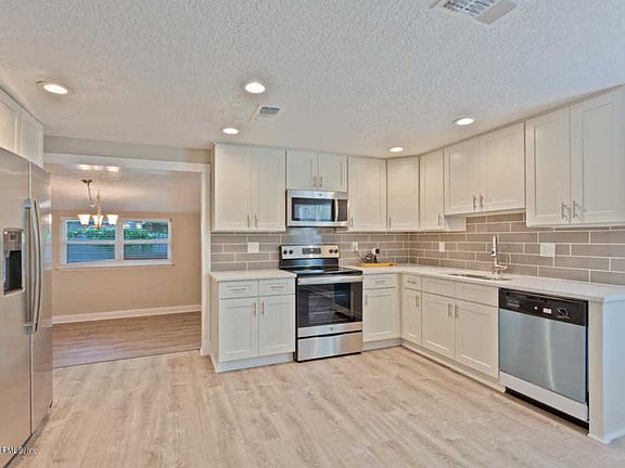 Just the home you are looking in Orange Park! A block construction starter home beautifully remodeled floor plan with new metal roof! Floor plan re-designed allows for open living, dining kitchen layout with quartz tops and new appliances. Bathrooms remodeled with new designs as well. New flooring, interior doors, hardware, lighting & plumbing fixtures, HVAC. New windows, interior washer dryer hook up, rear fence with a spacious and shaded rear screened room to enjoy fun Spring and Summer cookouts. A short distance to St Johns Country day school or top rated Clay County schools. Simple access Naval Base, shopping, dining and to the I295 Express Beltway Jacksonville. Buyer to verify all pertinent property information deemed necessary.