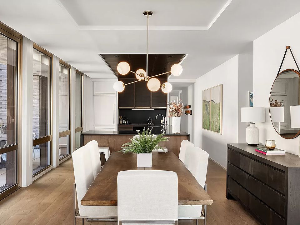 The spacious West facing living room and dining area is flooded with natural light given the space has 10-foot ceilings with massive oversized windows and 7-inch wide plank Austrian Oak floors. Step out onto your landscaped private terrace to enjoy some fresh air or dine alfresco, complete with Kolumba brick planters and a convenient non-freeze hose bib. A full wall of floor-to-ceiling Astec architectural bronze windows offers sweeping views of the vibrant Meatpacking District and down to the Hudson River, while putting you steps from some of the best shops, cafes and galleries of downtown NYC.