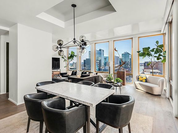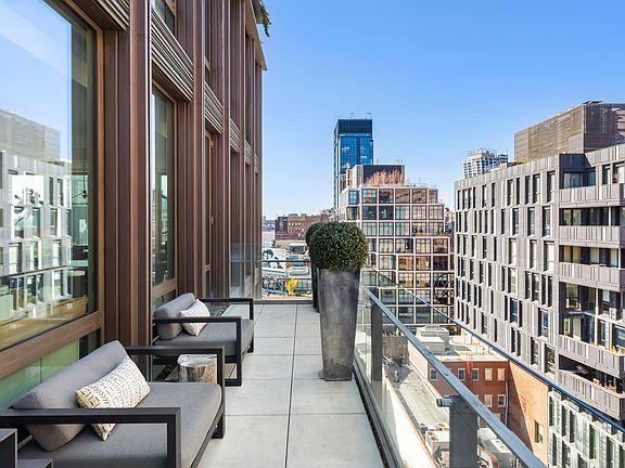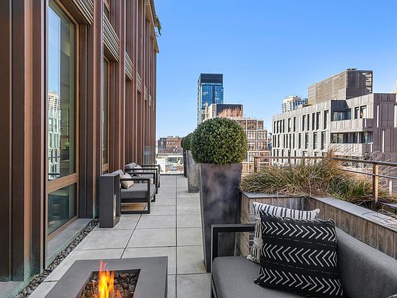 A rare opportunity to call this 2,016 square foot 3BR, 2.5BA penthouse home awaits! Enjoy the breathtaking views overlooking the meatpacking district from the comfort of your floor to ceiling windows throughout the living and dining rooms or expansive 236 square foot private terrace. The large open living and dining room features recessed 10.5-foot ceilings, custom-milled paneling and direct access to the landscaped private terrace with Kolumba brick planters and built-in irrigation. The artisan-crafted kitchen features custom oak millwork, bronze detailing, honed Absolute Black granite countertop/backsplash, Dornbracht fixtures, and fully built-in 36 in. Sub-Zero Fridge, 36 in. Wolf cooktop, 30 in. Wolf oven, under-counter Sub-zero wine cooler, and Bosch dishwasher. The master bedroom suite features a huge walk-in closet, a separate seating area with access to the terrace, and an en-suite 5-fixture bathroom. The bathroom includes a glass-enclosed wet room with oversized slabs of Spanish Travertine Marble. Additional bathroom features include a deep soaking tub with Spanish Travertine surround, solid brass vanity with granite countertop, Dornbracht fixtures, and custom brass wall sconces.The second and third bedrooms are served by a secondary bathroom with beautiful handcrafted, Moroccan ceramic tile. Off the third bedroom, there is a private laundry room with extra storage. The home is currently being utilized as a two-bedroom with a home office and lends itself to the flexibility of many different configurations. In addition to what the apartment itself privately offers, the building also features a state of the art gym and a beautifully landscaped roof deck.