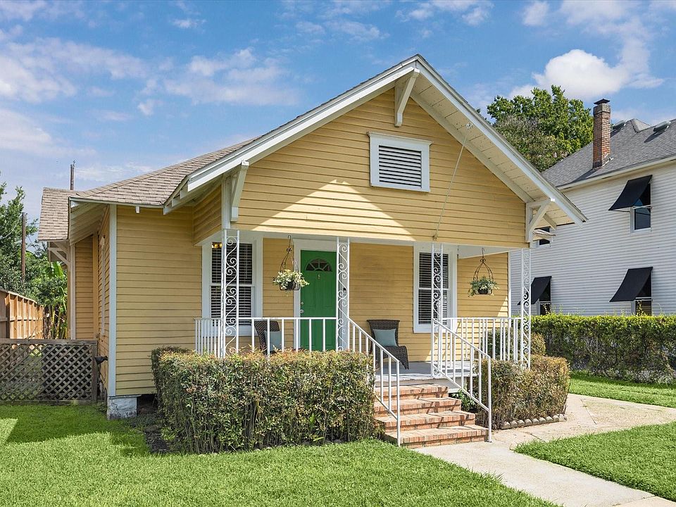 Charming Heights home on a spacious double lot! Rare 4-bedroom, 2-bath bungalow combines timeless character with modern updates. Recent improvements include fresh interior paint, a refinished deck, and new carpet (2025), making the home truly move-in ready. The open layout connects the kitchen, living, and dining areas for easy everyday living and entertaining. Two secondary bedrooms share a full bath off the main living space, while the primary suite offers an en-suite bath with stacked washer/dryer. A third large secondary bedroom sits across the hall for added flexibility. Outside, enjoy a generous backyard with an open deck, ample green space, and garage. The property is fully fenced with an automatic gate for convenience and privacy. Just one block from the Heights Hike & Bike Trail and minutes from local dining, shopping, and entertainment, both comfort and an unbeatable location in the heart of the Heights!