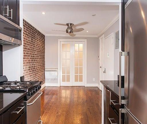 Welcome home to this beautifully renovated 1-bedroom residence, featuring a perfect blend of modern luxury and classic New York charm. This spacious apartment is filled with natural light and boasts wide-plank maple floors and exposed brick accents that create a warm, inviting atmosphere.