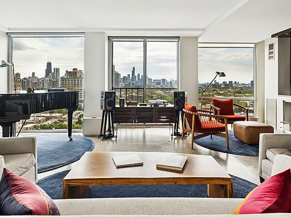 Three condos have been seamlessly combined to create a spectacular 3,350 sq. ft. four-bedroom residence showcasing world-class views of the lake, park, and skyline. This striking contemporary home features a clean, modern design with exceptional flow and generous, flexible living spaces-all framed by floor-to-ceiling windows capturing breathtaking panoramas. Polished concrete and hardwood floors, European-style baths, and designer lighting elevate the aesthetic throughout. The northeast corner living and dining area offers a fireplace, custom built-ins, electric shades throughout and stunning natural light. The chef's kitchen impresses with Leicht cabinetry, Thermador induction cooktop, Bosch dishwasher, Dacor ovens, a breakfast bar, and ample space for a dining table.The luxurious primary suite includes a custom walk-in closet and spa-like bath with wall-mounted Duravit sinks, airjet soaking tub, and steam shower. Additional highlights include three more bedrooms and baths, a family room, a den/office, and in-unit laundry. Valet and self-parking available. Ideally located within the highly sought-after Lincoln Elementary School District.