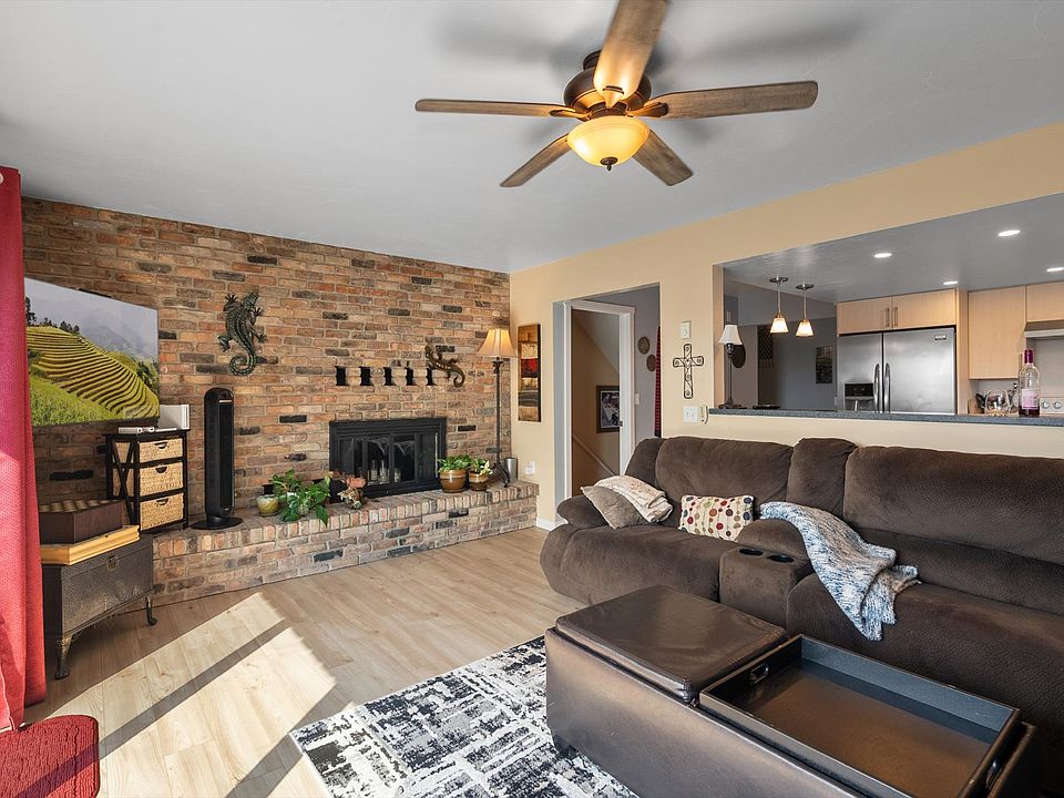This spacious 2,148 sq. ft. home has been fully updated with brand new luxury vinyl plank flooring, fresh carpet, oversized driveway with ample room for additional parking and modern finishes throughout. No hoa! The open living area flows seamlessly to a private outdoor deck with a custom 3-panel slider—perfect for entertaining. Custom French doors in the dining room let in natural light, while a 6-foot wood gate ensures privacy on the wraparound outdoor space. The kitchen features 2024 custom granite countertops, new cabinetry, and a farm-style sink, along with brand new appliances. Three large bedrooms are equipped with ceiling fans and new double-paned windows, providing plenty of light and energy efficiency. The renovated basement includes a separate living/work space potential for income producing rental space, attached garage access, a laundry area with stainless steel sink, and a full bathroom. This home offers modern updates and ample living space in a welcoming community.