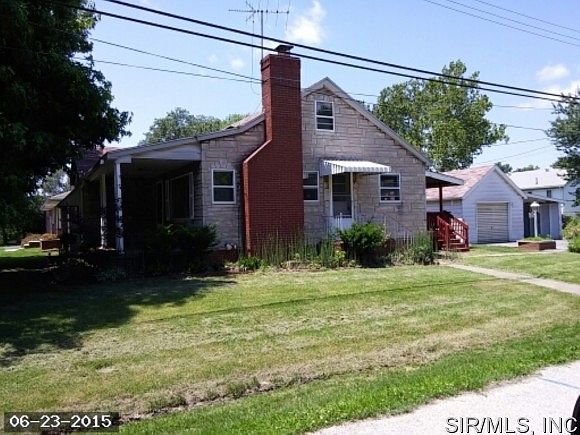 This adorable stone and brick home is situated on a quiet dead end street, on a nice sized corner lot. Tons of possibilities and charm! The full basement offers a finished family room with fireplace and a wet bar, a workshop area, storage and a commode and shower. The detached garage has a small shed attached and a carport. Call 618-717-4321 today for your showing!