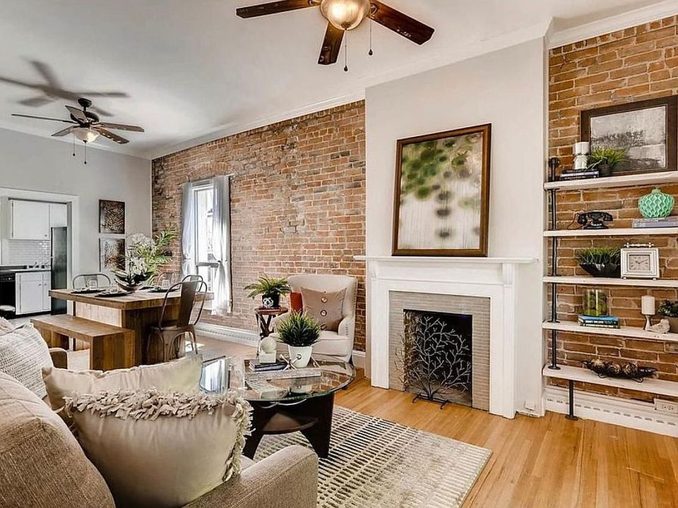 Modern updatesSun roomExposed brickHistoric decorative fireplaceDetached one-car garageBrand new roofBrand new windows