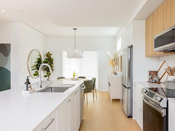 Newly completed, Greyson by award-winning Abstract Developments, is a collection of traditional townhomes nestled away in Victoria’s burgeoning Uptown neighbourhood. Conveniently situated next to the Galloping Goose trail and centred between the city’s outer limits & the downtown core, you are positioned perfectly for seamless connectivity within Victoria and beyond. This elegant 3 Bed, 3.5 Bath home offers 1,403 sq ft of living space with 9’ ceilings, generous windows & natural colours to embody a sense of ease & welcome. The gourmet kitchen showcases two-tone shaker-style matte white & slab style brushed oak cabinetry, quartz countertops and island, stainless steel appliance package and built-in full height pantry. Featuring two private outdoor spaces, including a balcony and patio surrounded by lush landscaping & white picket fences. Includes an EV-ready garage and an optional upgrade for AC. Move in when you’re ready and take advantage of the 10-year home warranty. Price + GST.