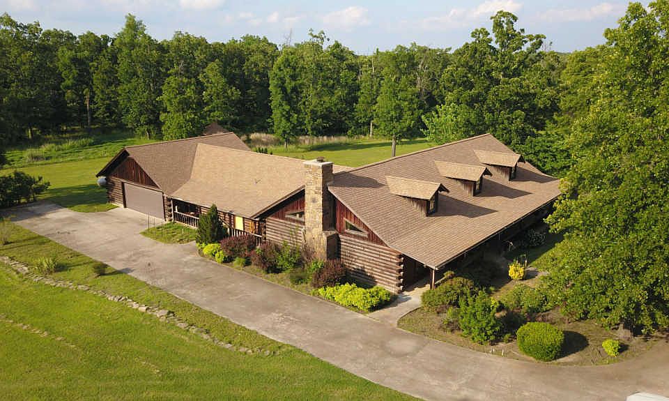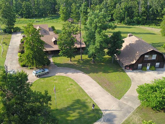 Ponderosa Setting!! Log cabins on 30 square acres with pond and out buildings. Properties total (Main house and Guesthouse) has 9 bedrooms. Main house has Open floor plan with country kitchen, walk-in pantry, Huge Den, Built-ins, Office, Laundry room with storage and wood tile floor throughout. All exterior doors lead to country covered porches. Guest house/office building has 5 bedrooms, Living area with Fireplace, Kitchen and a huge studio above it. Could be a studio apartment. Beautiful setting with circle driveway, Mature Trees and Landscaped.