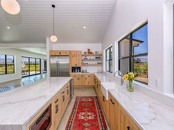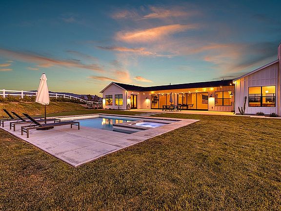 Were you thinking of building a new home in the Temecula wine country, one with spectacular views and the best in high end finishes? No worries, it has already been built for you. This single story designer's dream is not to be missed! It is over 3400 ft with a great room design off of a massive chef's kitchen with Viking Refrigerator, double oven and wine fridge, White Oak Cabinets and even a Miele coffee maker. The 4 bedrooms offer great closets and en-suite baths. The master bath has plenty of light, a huge walk in closet, custom shower and free standing tub. There is loads of custom lighting and doors, high end thermo-grade windows plus over sized sliding glass door offering views of the pool and the wine country beyond. Outside you find the pebble tech salt water pool and spa with custom lighting and water feature, 1/2 acre of Tempranillo grapes ready for harvest next year, fully landscaped yard and patio areas, full working garden area, a rough graded pad for a guest house or even a tennis court, as well as a pad for your RV or trailer. The detached 2 car garage is oversized with plenty of room for whatever you need. The property is fully fenced with a custom security gate. If you have been dreaming of waking up to your morning coffee with views of the balloons floating nearby, this is the estate for you!