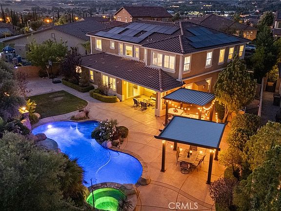 Introducing the extraordinary Morgan Hill Estate, a luxurious haven with a tropical paradise pool and an entertainer's dream backyard, set on over a quarter-acre lot. Nestled in a serene cul-de-sac, this home captivates with its Mediterranean architecture, lush greenery, manicured hedges, and a stunning olive tree, creating remarkable curb appeal. Upon entering through the arched doorway, you are welcomed by a traditional family room and an elegant formal dining room. The chef's kitchen is a culinary delight, featuring an additional prep station and a spacious walk-in pantry. The highly sought-after open-concept design with high ceilings allows the kitchen to overlook the family room and informal dining area, perfect for modern living. This home offers a desirable downstairs bedroom with a private en-suite bathroom. Upstairs, you'll find a versatile loft area ideal for entertaining, along with two built-in workstations for office use or children's study space. The expansive master bedroom overlooks the picturesque backyard and leads to a lavish master bathroom. This luxurious space includes two separate vanities, a central soaking tub, a grand shower with dual shower heads, and a tiled built-in bench. The upper level also comprises three additional guest or children's bedrooms and a well-equipped laundry room with ample cabinet space and a sink basin. Additional features include FULLY PAID OFF SOLAR SYSTEM (almost $40k system), a whole-house water softener and a separate filtration system for the kitchen. The backyard is an oasis with a California room equipped with a mister, two Alumawood gazebos, one covering a large outdoor kitchen, a stunning saltwater pebble tech pool with a waterfall, slide, grotto, five-zone outdoor lighting, and a basketball half-court. Car enthusiasts will appreciate the four-car garage. Enhancing this exceptional estate is the Morgan Hills clubhouse, offering resort-style amenities such as a pool, spa, pickleball courts, tennis courts, card game room, gym, billiard room, banquet facilities, recreation area, childcare facilities, and a fantastic playground. Make this remarkable Morgan Hills Estate your new home and experience unparalleled luxury and comfort. WELCOME HOME!!!!!