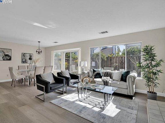 Welcome to this beautiful NE facing single family attached house in the desirable Hampton Place neighborhood of Ardenwood! Excellent location right across from common area grass. You're greeted with vaulted high ceilings and an open floor plan with plenty of windows*Open kitchen w/freshly painted cabinets*Quartz countertops & backsplash*New SS sink, faucet, & appliances*Open living room & dining room concept*Half bathroom downstairs*Primary bedroom w/vaulted ceilings and 2 closets*Primary bathroom w/extra large vanity, split bathroom, stall shower*New luxury vinyl floors throughout the home with tile in the entry* Fresh new custom designer interior paint*New 3.5" modern baseboards*New light fixtures*Cozy yard with a concrete patio and an assortment of plants & trees*2 car attached garage with automatic opener*Laundry hookups in the garage*Highly desirable Ardenwood & American Schools, Karl Nordvik park, Coyote Hills, shopping, Facebook, Tesla, & much more! HOA amenities include ClubHouse, Greenbelt, Pool, Spa, and Guest Parking. Don't miss this opportunity!