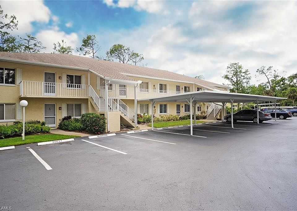 You have to see this first floor condo...great setting...great location...and renovated! Updated features include new tile on the diagonal, freshly painted throughout, kitchen offers solid wood cabinetry and granite countertops. Both baths have been updated. Move right in, no updates needed. Even the HVAC system is only 6 months old. If you're looking for a quiet, low maintenance property look no further. This 2 bedroom / 2 bath condo has a tranquil setting. It is so quite as it is the last building and it is furthest from the road. The screened lanai backs up to pine trees with a path leading to the pool and spa. The complex also offers 2 tennis courts. Only 15 minutes to downtown Old Naples with it's shopping, restaurants, and the Gulf.