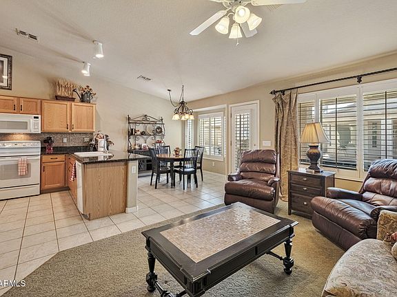 Experience resort-style living in Solera, Chandler's premier 55+ gated community nestled near the stunning San Tan Mountains. This beautiful home with OWNED SOLAR, split plan with 2 BEDROOMS, 2 BATHS, 2-CAR GARAGE WITH 4-FOOT EXTENSION. PLANTATION SHUTTERS THROUGHOUT, Granite countertops, R.O and soft water systems installed. Spacious storage throughout, including walk in closet in primary suite and double pantries. 2ND Bedroom doubles as a home workspace or office accommodates guests with a custom Murphy bed, utilizing space wisely. NORTH/SOUTH EXPOSURE! Enjoy exceptional amenities, including a heated pool, spa, private clubhouse, fitness center, tennis and pickleball courts, and an on-site restaurant. The Lone Tree Golf Club completes the charm of this vibrant, active adult community!
