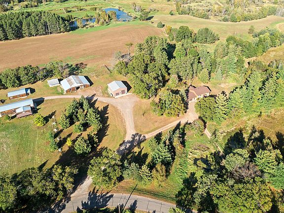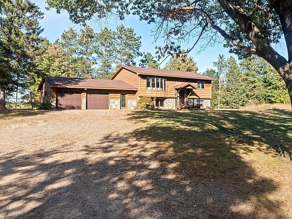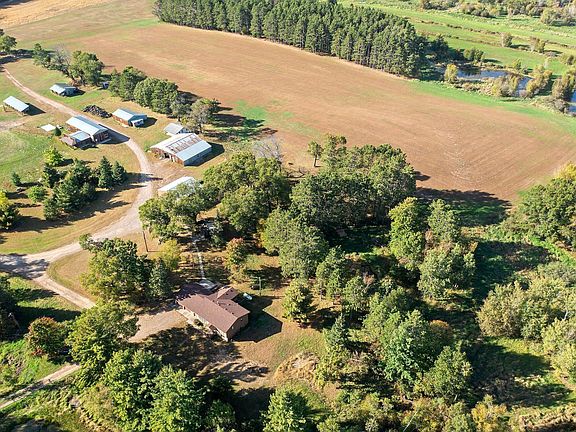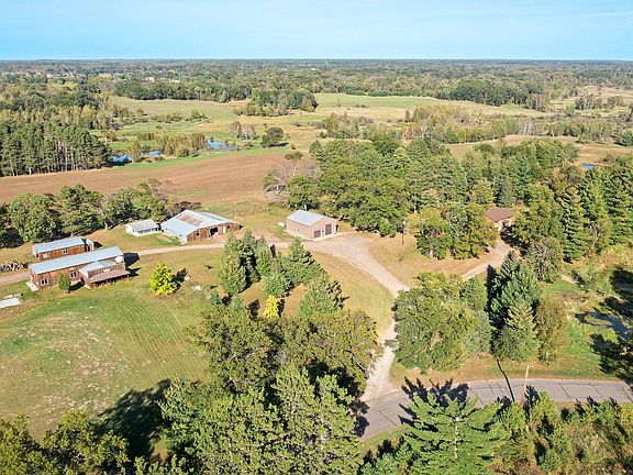 The possibilities are endless here! Come check out this lovely 3 bedroom home on 8.24 acres with many outbuildings to support your hobbies! The house has many updates including smart thermometers (garage, house & shop), brand new flooring, kitchen appliances and septic system all installed this year. Not to mention the recently updated roof (on the house) and quarts countertops in the kitchen and bathrooms. Enjoy your private nature view from the sun room or back deck. The attached garage is insulated and heated (brand new gas heater 2024). The pole barn is insulated and heated with concrete floor and plumbing (new septic being installed late October 2024). Save a little gas money by using the outdoor wood boiler that supplies heat to the pole barn and house. Outbuilding #2 has a concrete floor and electricity with lots of storage/ work space, outbuilding #3 could be great for horses/ outdoor animals (partial concrete floor, the rest dirt floor with back door to grassy area that could be fenced in), outbuilding #4 could be a cute little guest house with some TLC, outbuilding #5 would be great for extra storage (concrete floor & windows for natural light). All of this on secluded acreage with mature trees only about 40 miles from the metro. Bring your ideas and turn this property into the home you've been dreaming of!